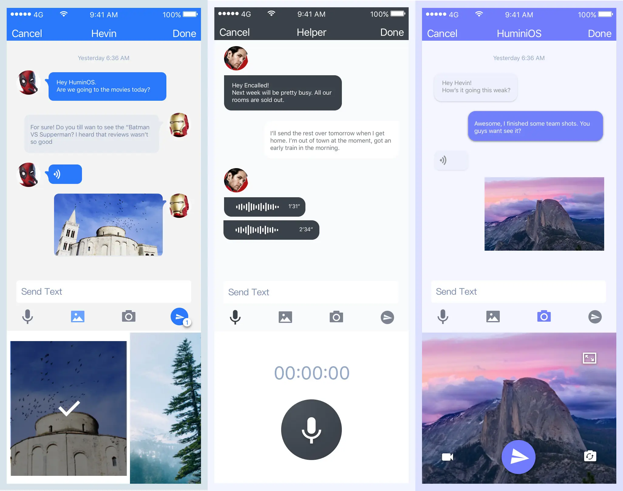 消息列表支持多种常见的消息类型:文字、图片、语音、视频。