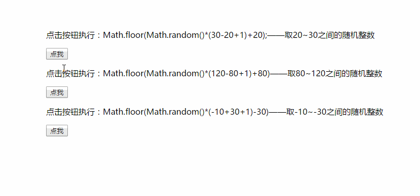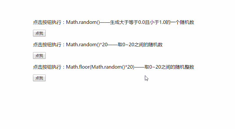 Math.floor(Math.random()*20)——取0~20之间的随机整数: