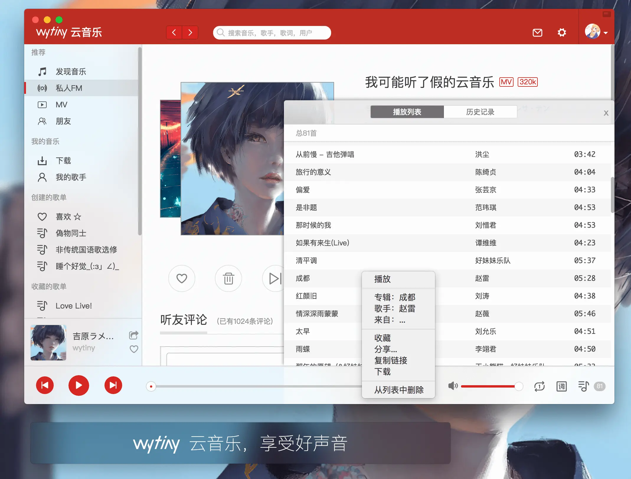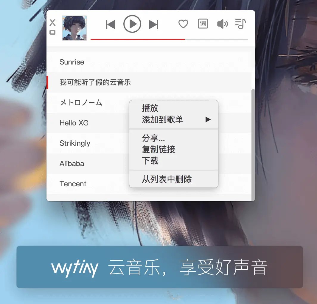 用最近做的山寨云音乐举几个例子(目前只针对mac版开发)