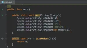 现在我从 Java 引用中获得了好处。怎么样获得的呢?我的编译器,编译我的程序,为我的所有数据类型生成了代码。现在,编译器可以很容易地从我的参数的数据类型做决定。这里没有什么神奇的地方。每当我没有提到数据结构,我的编译器就从上下文中提取并且赋予其数据类型,因为 Java 是一个静态类型语言。