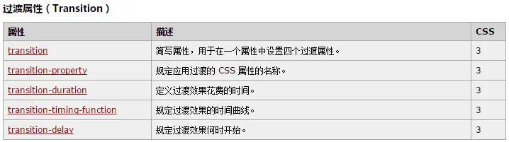 注释:Internet Explorer 9 以及更早的版本,不支持 transition 属性。