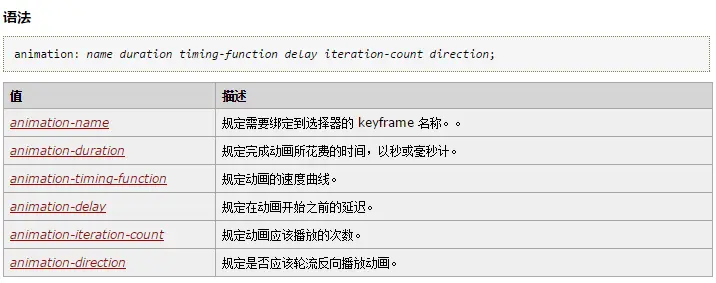 注释:Internet Explorer 9,以及更早的版本,不支持 @keyframe 规则或 animation 属性。