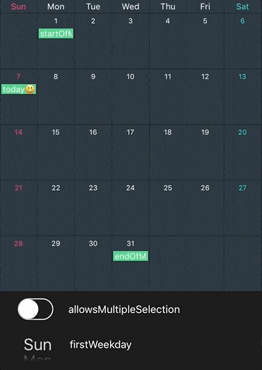 var deselectAnimation: YMSelectAnimation- Customizable date range of calendarView.