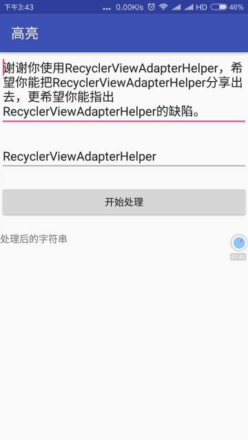 这里我提供一个静态方法给大家,传原始的字符串,关键字和高亮颜色即可,很多人问这个,索性在库中提供了。