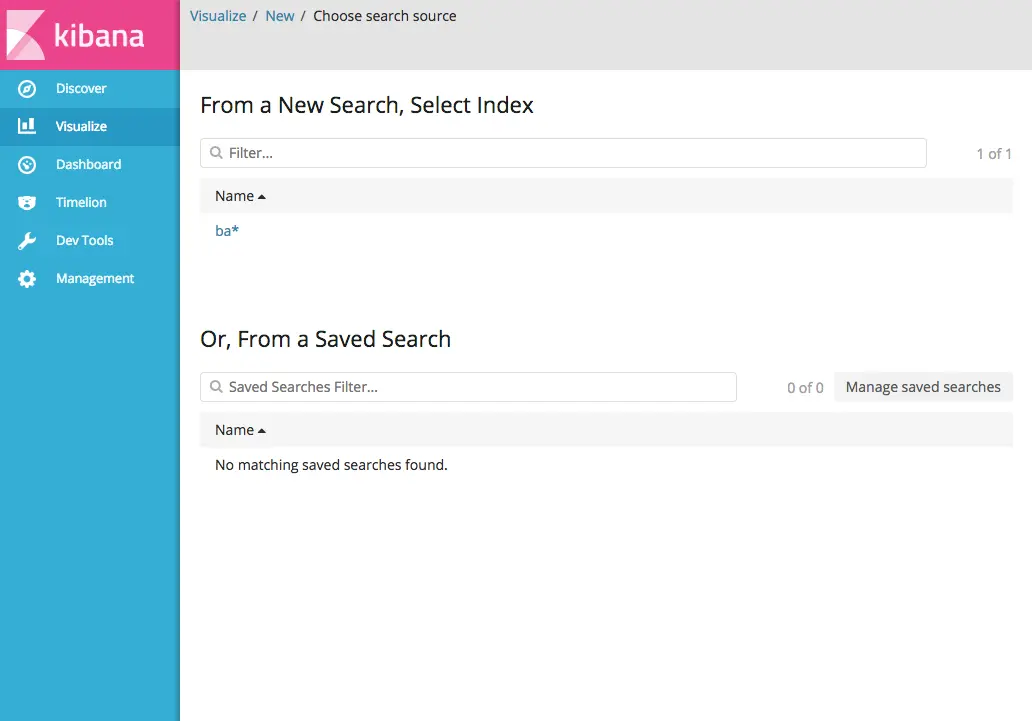 你可以用保存的数据完成可视化工作,或者重建一个搜索条件。由于我们要分析账户信息数据,所以选择ba*索引模式。