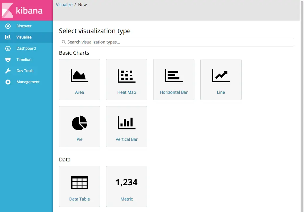 可视化工具能够以多种方式观察分析你的数据,下面我们就用饼状图来分析一下账户信息数据集。点击下图的Create a visualization 开始我们的实践。