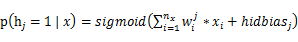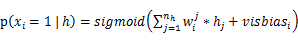 编码过程:利用原始数据,我们求取隐藏层的隐向量表示,这个过程是由条件概率公式求得:
