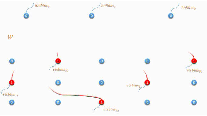 就是最后负梯度的近似,这个过程被称为k步Gibbs采样过程,下图就是k步Gibbs采样过程的动态图展示: