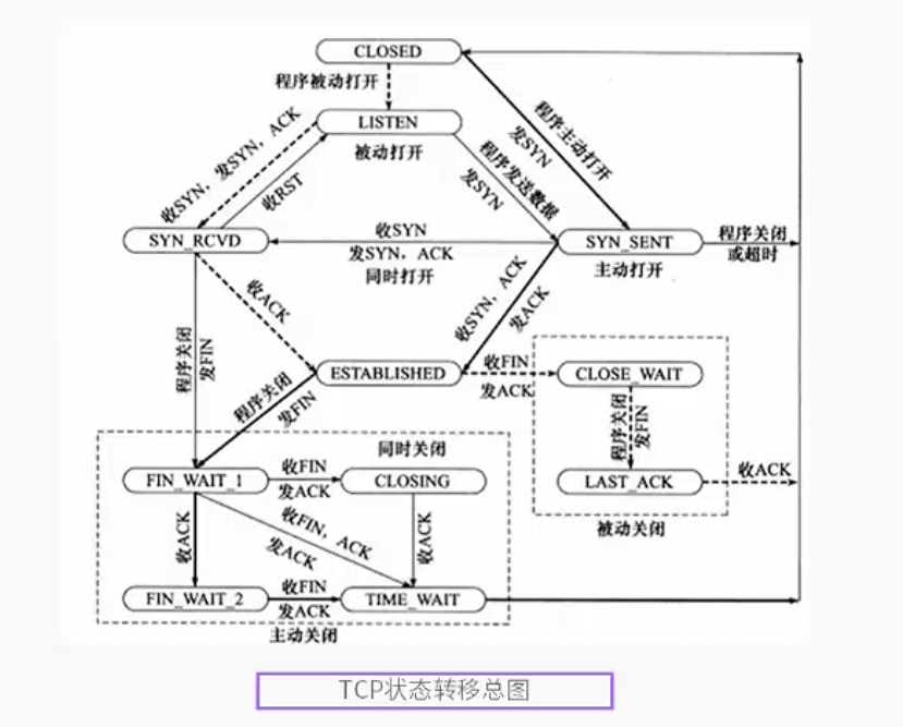 图:描述了所有可能的TCP状态以及状态转换