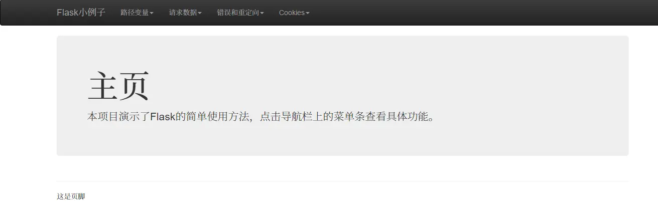 <p>本项目演示了Flask的简单使用方法,点击导航栏上的菜单条查看具体功能。</p>