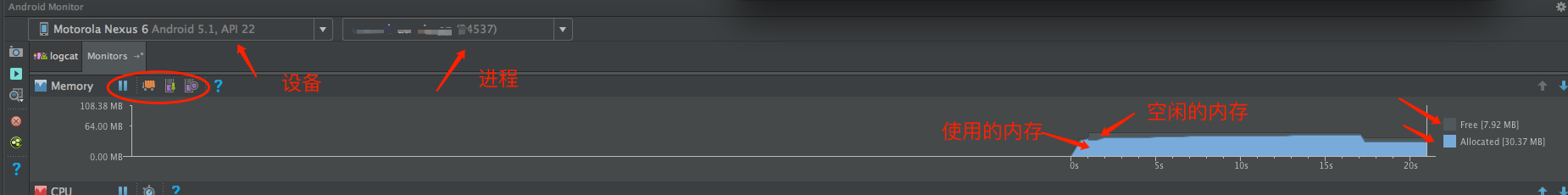 在我们使用Android Studio时,我们可以通过Minitor Memory来观察内存的使用情况.