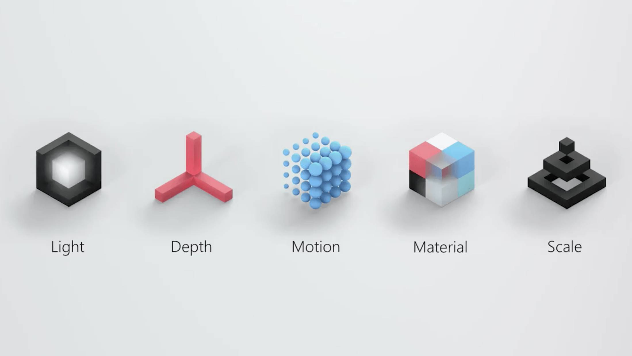 Fluent Design 强调 5 个元素:光线、深度、动效、材质和缩放。