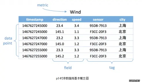 下面介绍下时序数据库的一些基本概念(不同的时序数据库称呼略有不同)。
