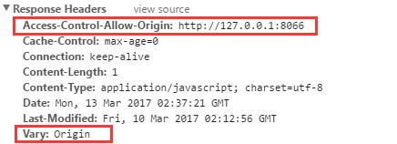 Access-Control-Allow-Origin: * 表示通过该跨域请求,且该资源可以被任意站点跨站访问。而当该资源仅允许来自 http://127.0.0.1:8066 的跨站请求,其它站点都不能跨站访问时,将可以返回: