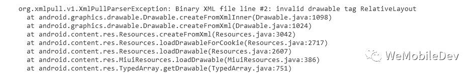 最后我们发现,这个crash是在ImageView初始化drawable时加载了错误的xml文件导致的。由于Miui在加载自己的主题资源时使用自定义MiuiTypedArray,所以这里拿出来的就非常有可能是之前用过的MiuiTypedArray,导致后面调用typedArray的getDrawable方法时逻辑与原生系统不一致。
