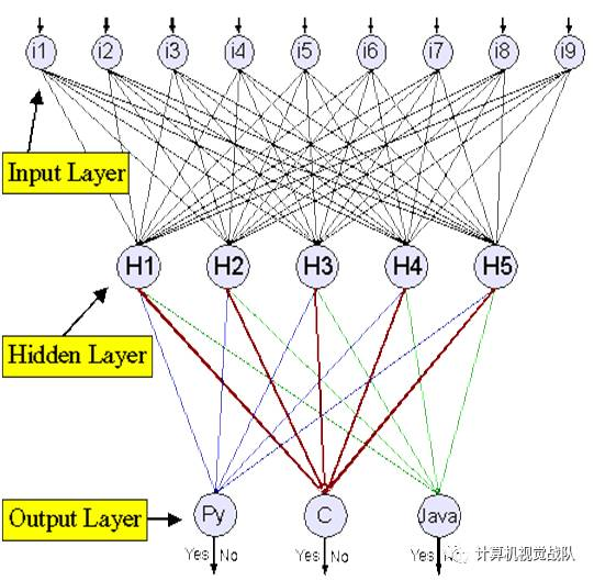 让我们回忆一下输入值都是不同特殊字符出现的规格化数目,目标值(在大于号以后)是 YES/NO,它代表包含这些字符的源代码文件的类型,不过对于什么是什么来说,并没有非常明显的东西。数字可以是输入或期望的 任意值,这才是最重要的。