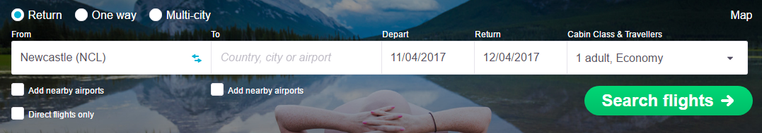旅行网站的默认项是非常好的例子。Skyscanner的预置了二等舱选项和游客类型,这是多数用户的典型选择。