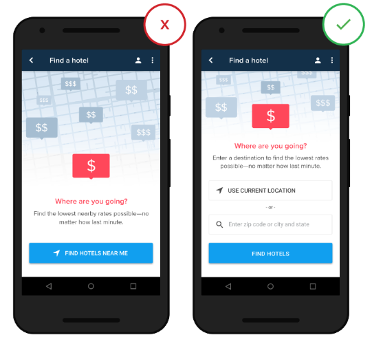 就像我刚提到的,自动检测位置能帮用户节省时间。但是,总有的用户需要选择其他的位置(例如查找一个远处的店铺)。图片来源:Google