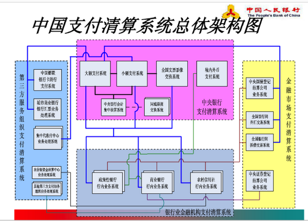 中央银行支付清算系统是中国金融支付清算系统的中枢,也是确保经济金融正常运行的最重要基础设施之一。自2002年以来,人行相继建立了包括大额支付系统、小额支付系统和支票影像交换系统等应用的第一代支付系统。2014年下半年,各家银行开始陆续升级至人民银行第二代现代化支付系统,以满足最新的支付清算需求。