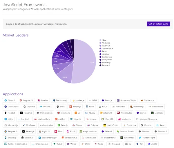 空口无凭,我们还是拿数据来说话,本文所有统计结果都来自 Wappalyzer.