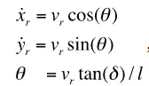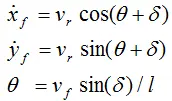 其中 l代表车辆前后轴中心间距。类似地,用车辆前轮相关分量的表现形式为: