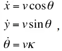 车辆的自行车模型所代表的车辆姿态如图9所示。这里我们使用一个基于x-y的二维平面,其中和分别代表其x和y方向的单元向量。向量pr和向量pf分别代表车辆后轮和前轮与地面的接触点。车辆的朝向角θ代表车辆和x轴的夹角(即向量pr和单元向量的夹角)。方向盘转角δ定义为前轮朝向和车辆朝向角的夹角。其中前后轮与地面接触点的向量pf和pr之间满足: