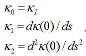 在初始状态 时,考虑曲率的一阶导数和二阶导数均需要满足初始状态的限制,我们可以得到: