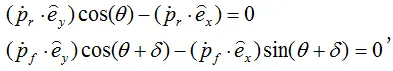 ,那么上述的向量pf和pr之间的关系限制在后轮相关分量上的表现形式为: