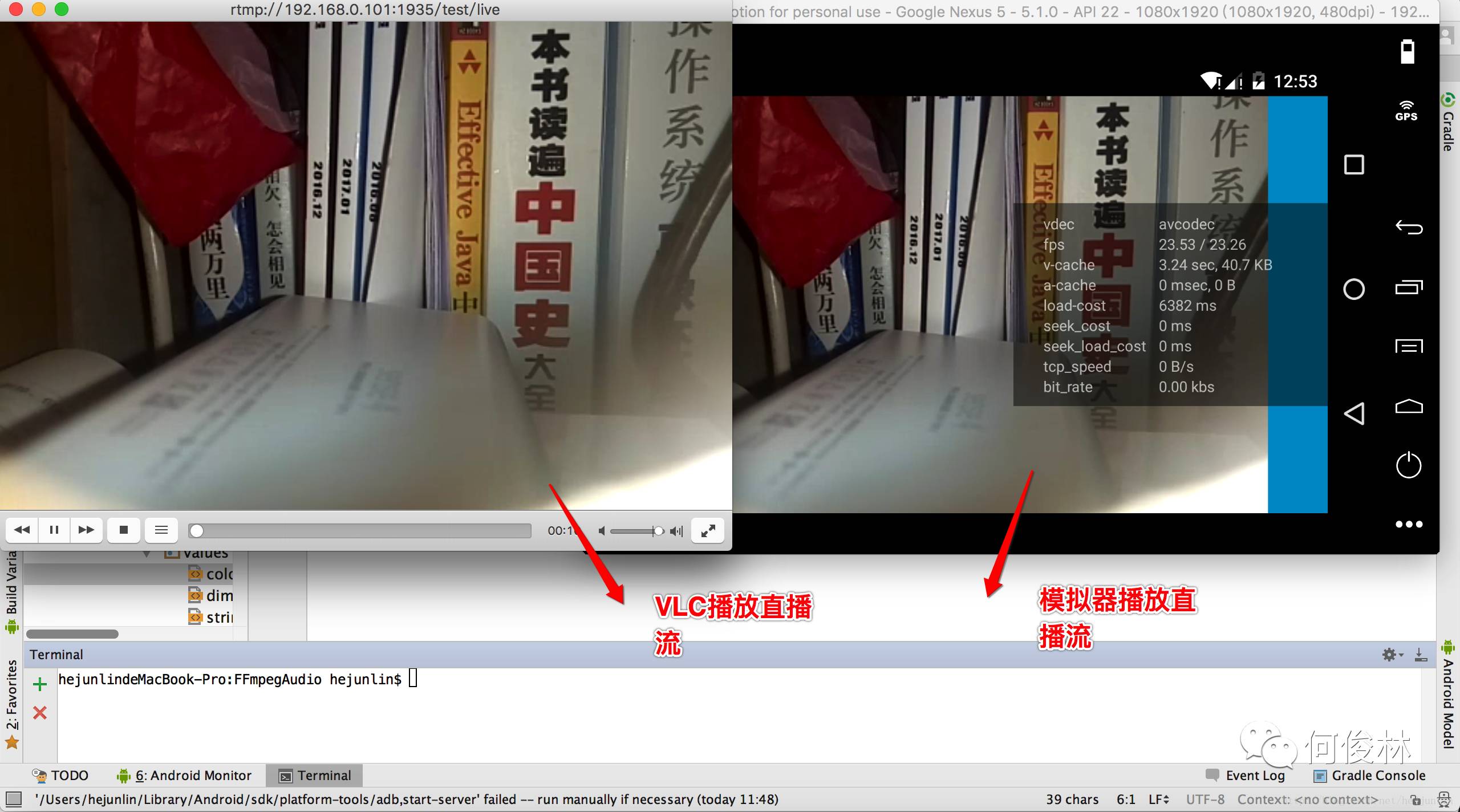 这里用vlc,及ijkplayer进行拉流,效果如下: