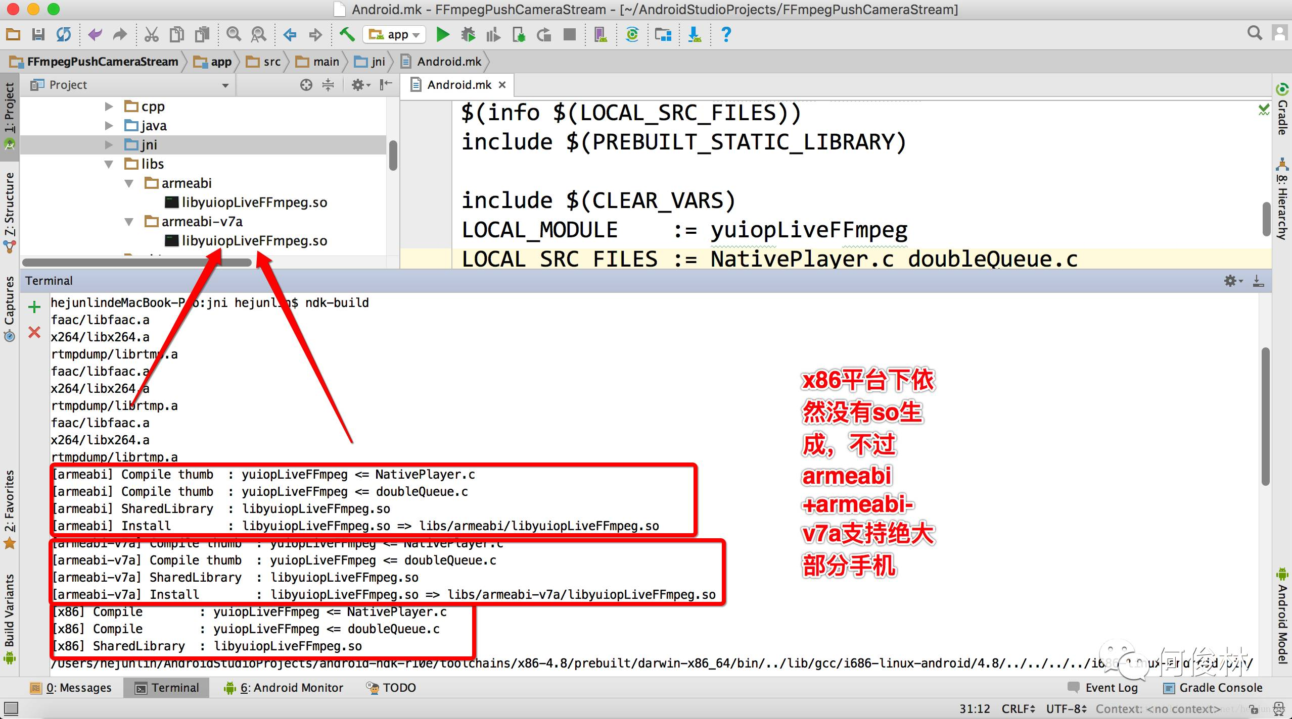 ndk编译so文件:(yuiopLiveFFmpeg,为什么加yuiopLive,因为我的网名id叫:逆流的鱼yuiop)