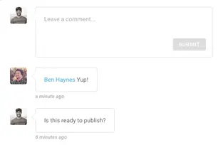 @mention other CMS users. Beyond commenting, an integrated messaging system allows for internal communication.