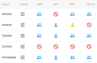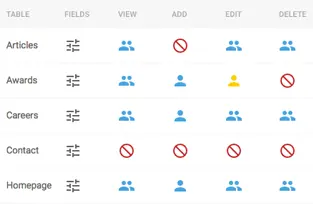 customization is access-control. Directus users are each assigned to a user-group with fully customizable privileges for tables, columns, and workflow status or creator.
