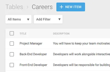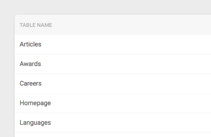 Item Listing Clicking into tables will take you to an item listing page where all its records are displayed.