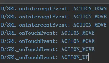 在SRL中重写了onInterceptTouchEvent和onTouchEvent方法,通过完成一次完整的下拉刷新,打印Log,我们发现调用过程如下: