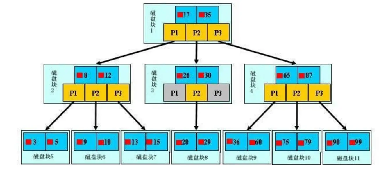 当然,如果我们使用平衡二叉树的磁盘存储结构来进行查找,磁盘4次,最多5次,而且文件越多,B树比平衡二叉树所用的磁盘IO操作次数将越少,效率也越高。
