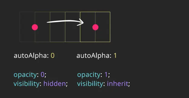 autoAlpha方法是GSAP中一个特别的属性,它把opacity和visibility两个属性合二为一了。