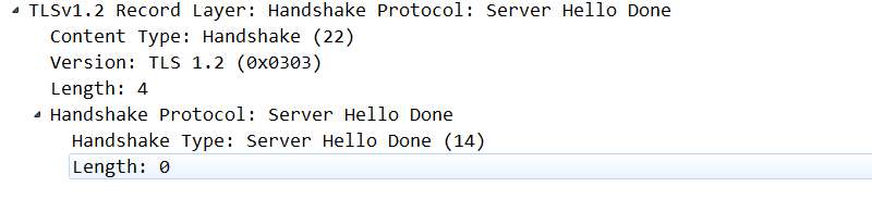 ServerHelloDone消息表明服务器已经将所有预计的握手消息发送完毕。在此之后,服务器会等待客户端发送消息。