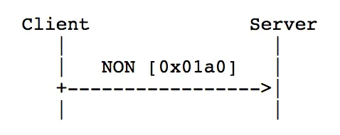如上图,客户端发起一个NON报文(Message ID = 0x01a0)之后,服务端无需回复响应,客户端也不会重发。