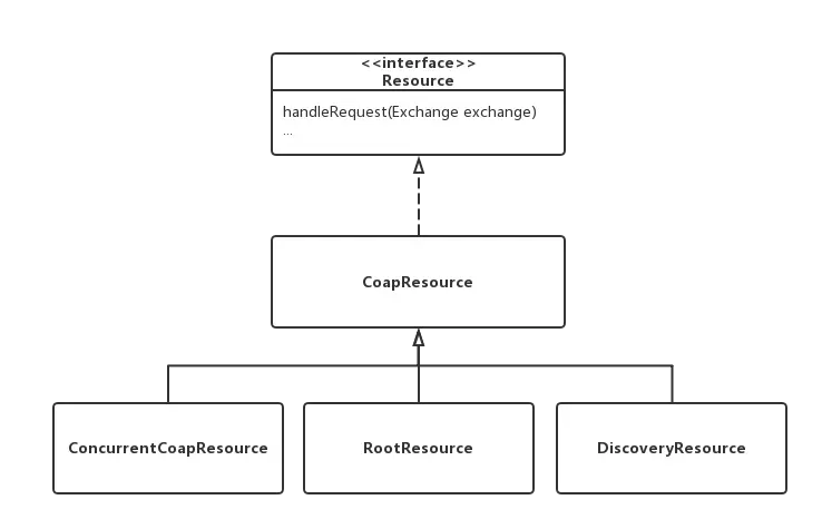 还记得CoapServer构造方法里创建了一个RootResource吗?它的资源路径为空,而客户端发起的GET请求默认也是空路径。那么ServerMessageDeliverer就会把请求分发给RootResource处理。RootResource类没有覆写handleRequest(Exchange exchange)方法,所以我们看看CoapResource父类的实现:
