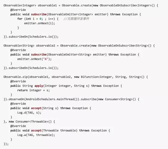 当上下游工作在不同的线程中时, 这时候是一个异步的订阅关系, 这个时候上游发送数据 不需要等待下游接收, 为什么呢, 因为两个线程并不能直接进行通信, 因此上游发送的事件并不能直接到下游里去, 这个时候就需要一个田螺姑娘来帮助它们俩, 这个田螺姑娘就是我们刚才说的水缸 ! 上游把事件发送到水缸里去, 下游从水缸里取出事件来处理, 因此, 当上游发事件的速度太快, 下游取事件的速度太慢, 水缸就会迅速装满, 然后溢出来, 最后就OOM了.