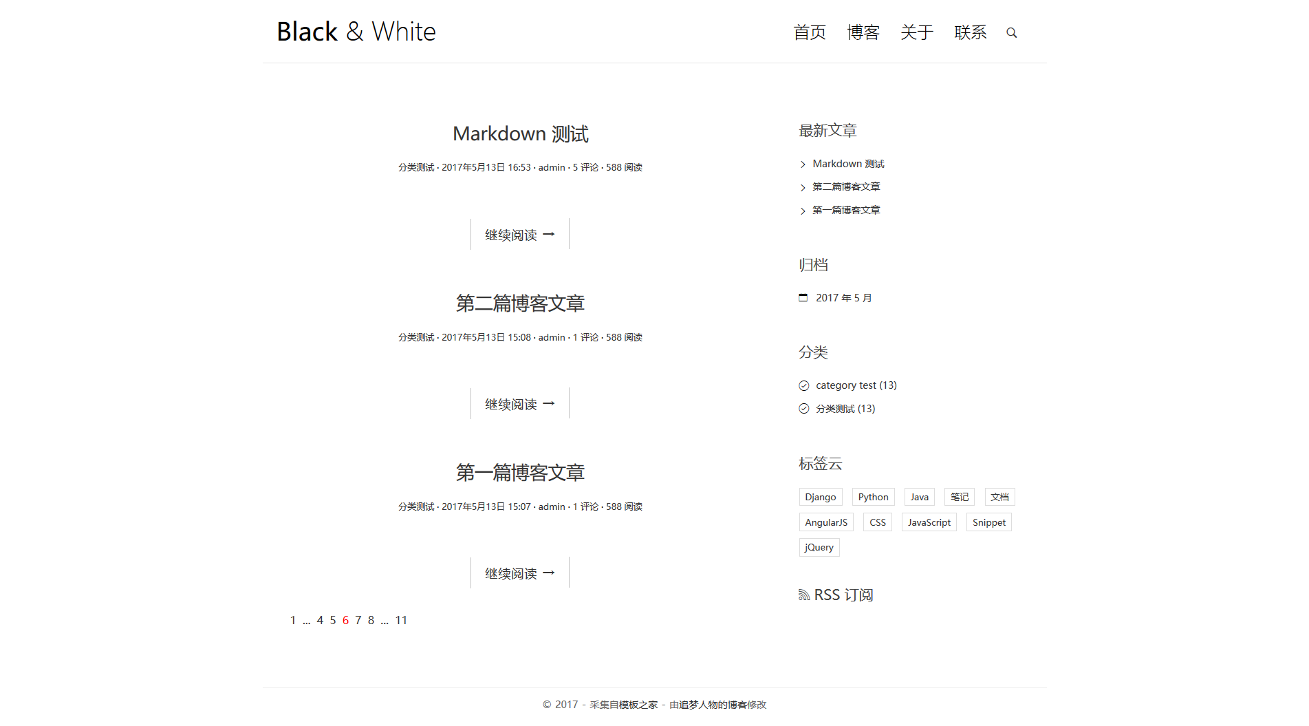 博客前端模板托管在 GitHub:博客模板