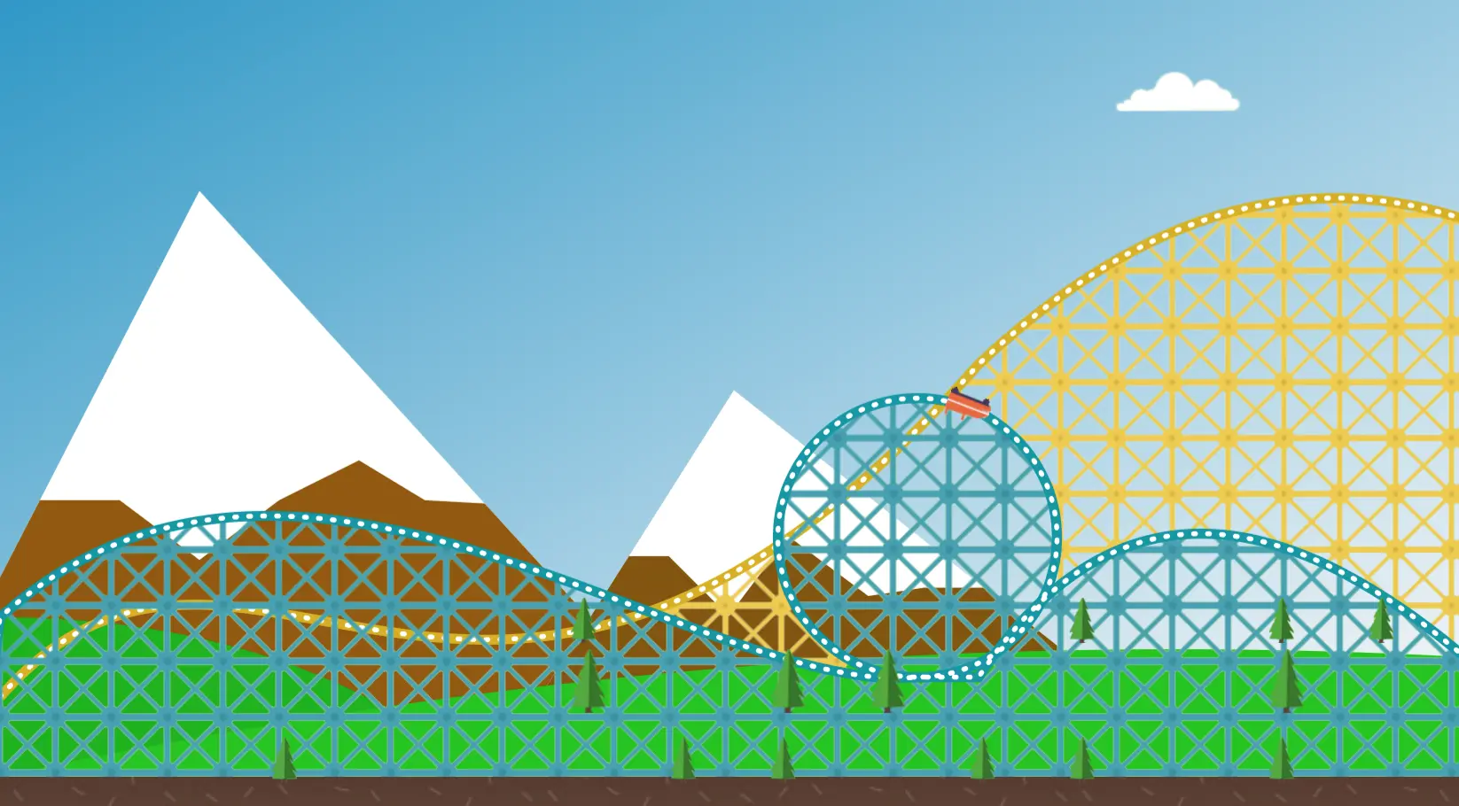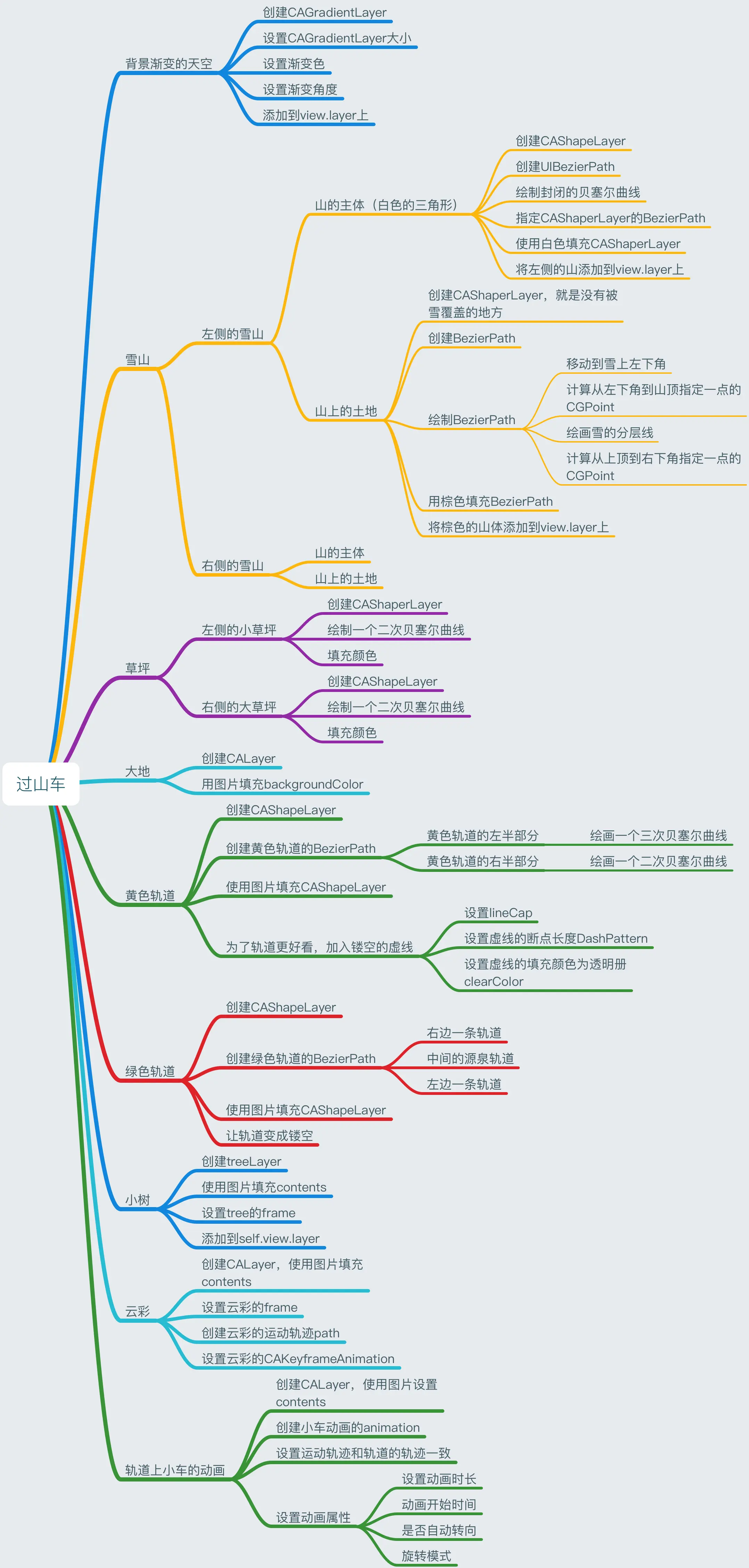 之前在一个网站上看到了一个HTML5/SVG实现的过山车动画,点这里看网页版。 觉得很棒,想想咱们iOS也完全可以实现,正好还可以全面回顾一下之前分享过的关于iOS中间动画系列会使用到的各个内容。不过今天的内容稍微有点多,我呢尽量只说最重要的部分,这里面所有的内容都是通过代码绘制出来的。