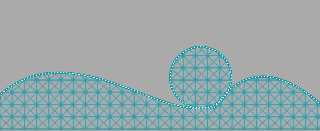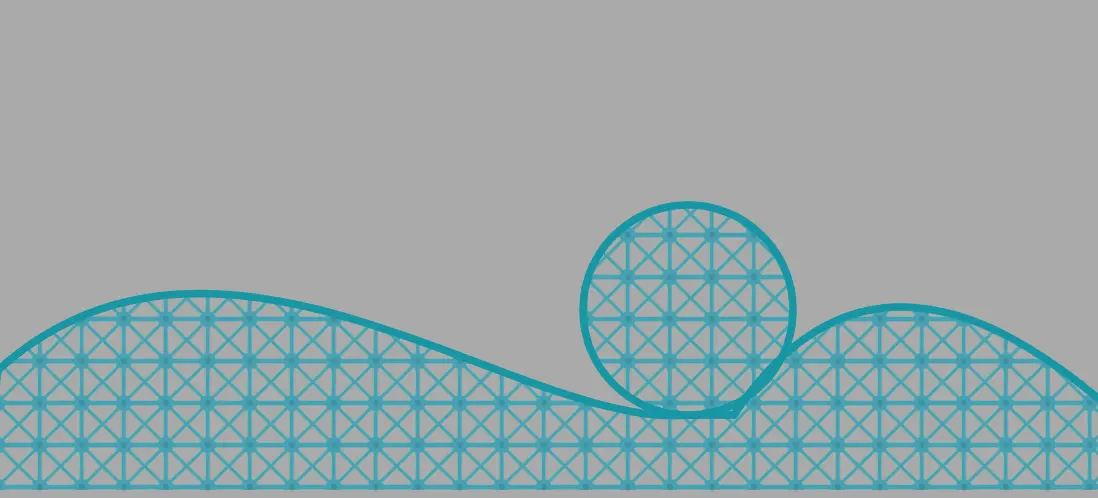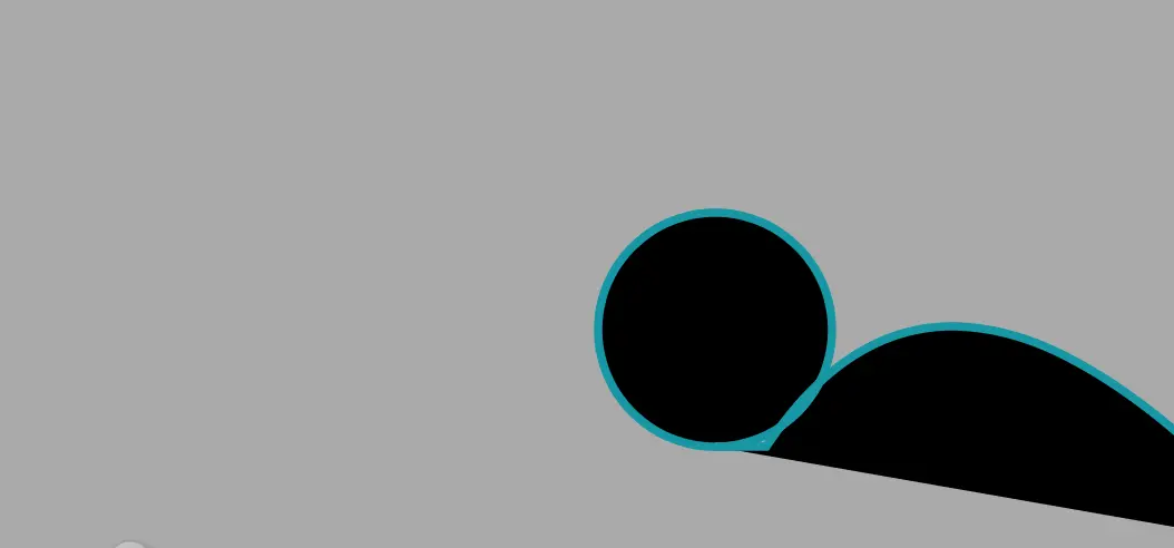 轨道这部分主要就是花了几个二次贝塞尔曲线,三次贝塞尔曲线。那我们用最复杂的绿色这个带圆圈的轨道来分享一下。它是由三部分组成的,考虑到在最后我们会让过山车从右边进入,跑到左边去,我们就从最右侧开始画起。