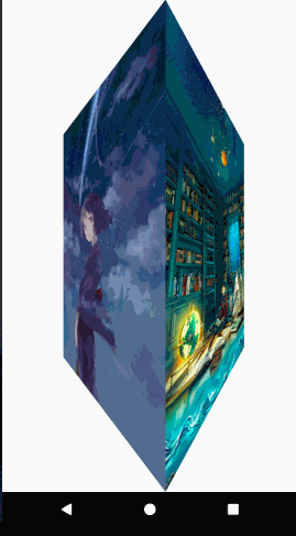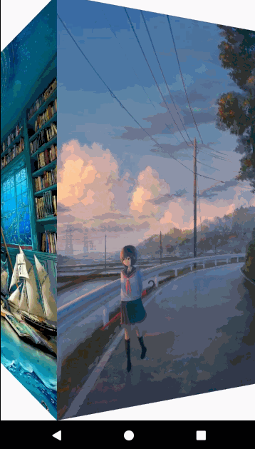 看到这样的效果,很容易想到用ViewPager的Transformer动画来实现。当然这种翻转效果网上也有相应的实现,就是以View的左边或右边为旋转轴进行空间上Y轴的旋转。
