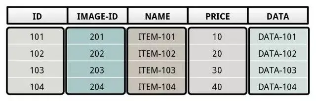 不同于 NSM 按照每行存放,以及 DSM 按照每列存放,FSM 将数据分成了多个区块,Peloton 里面叫做 Tile,上面的图显示的是两个 Tile,一个 Tile 包含了 ID,Image ID 以及 Name,而另一个 Tile 里面则是包含了 Price 和 Data。各个 Tile 里面数据是连续存放的。就是说,我们使用 Tile 来模拟了 DSM,在 Tile 里面则是 NSM。