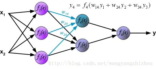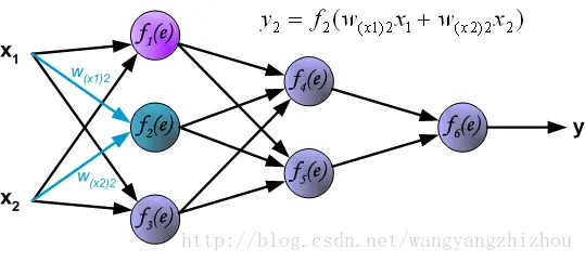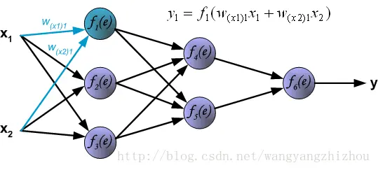 下面是一个三层(不算输入层)神经网络,两个输入经过几层网络后得到一个输出。