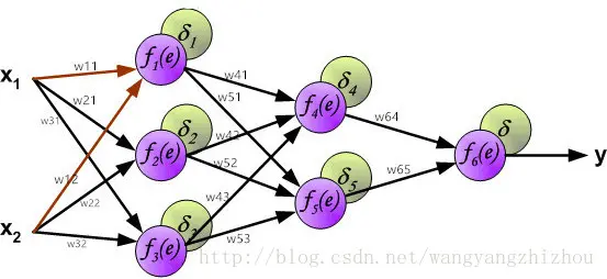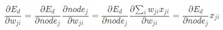 对于隐层,设节点j的所有输出为A,则下一层网络有多少个节点,则它的集合大小为多少,比如上图中,对于节点1,它的输出集合A大小为2,分别输出到节点4和节点5。隐层节点的输入