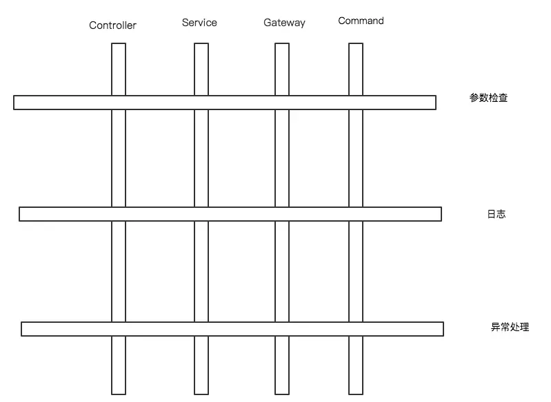 软件开发一直在寻求一种高效开发、护展、维护的方式。从面向过程的开发实践中,前人将关注点抽象出来,对行为和属性进行聚合,形成了面向对象的开发思想,其在一定程度上影响了软件开发的过程。鉴于此,我们在开发的过程中会对软件开发进行抽象、分割成各个模块或对象。例如,我们会对API进行抽象成四个模块:Controller,Service,Gateway,Command.这很好地解决了业务级别的开发,但对于系统级别的开发我们很难聚焦。比如、对于每一个模块需要进行打日志、代码监控、异常处理。以打日志为例,我只能将日志代码嵌套在各个对象上,而无法关注日志本身,而这种现象又偏离了OOP思想。