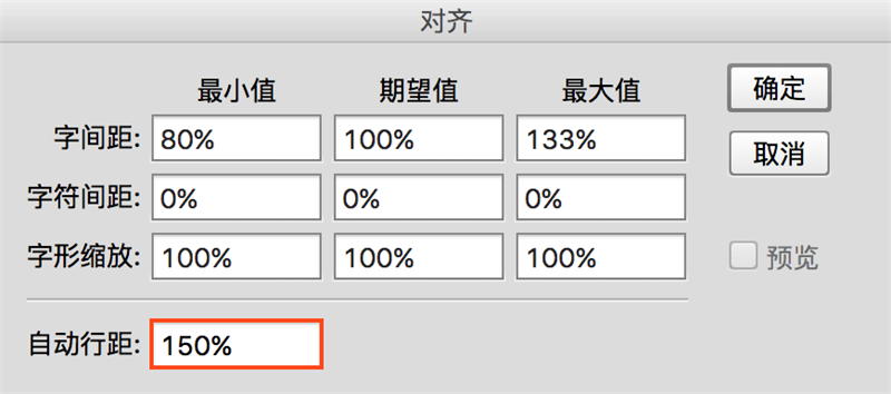 行高默认为字号的 1.5 倍。段落间距一般为字号的一倍宽。