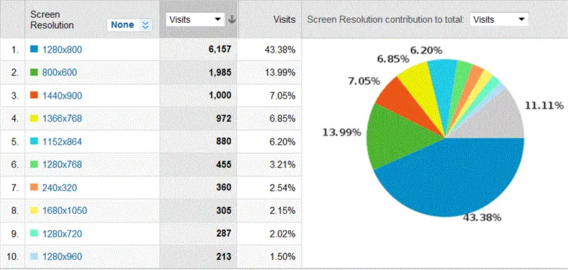 我们可以通过统计分析工具获取用户屏幕分辨率数据,从而为设计提供参考。例如使用Google Analytics 来获取用户屏幕分辨率数据。